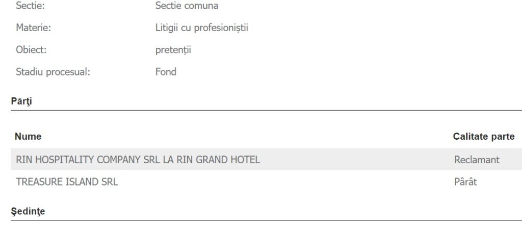 Compania Treasure Island SRL a fost dată în judecată de una dintre firmele lui Robert Negoiță, pentru că a tras o țeapă de peste 45.000 de lei. Astfel, SRL-ul lui Negoiță a apelat la instanță, iar judecătorii au dispus: „Admite acţiunea. Obligă pârâta la plata către reclamantă a sumei de 45212 lei cu titlu de debit principal reprezentând contravaloare factură neachitată precum şi la plata dobânzii legale aferente, calculate de la data scadenţei şi până la data achitării integrale. Obligă pârâta la plata către reclamantă a sumei de 1961,36 de lei cu titlu de cheltuieli de judecată reprezentând taxă judiciară de timbru. Cu drept de apel în termen de 30 de zile de la comunicare ce se va înregistra la Judecătoria Sectorului 2 Bucureşti”.